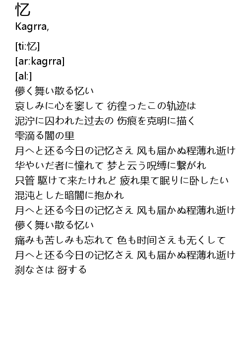 | [02:01.18] | 儚く舞い散る忆い |
