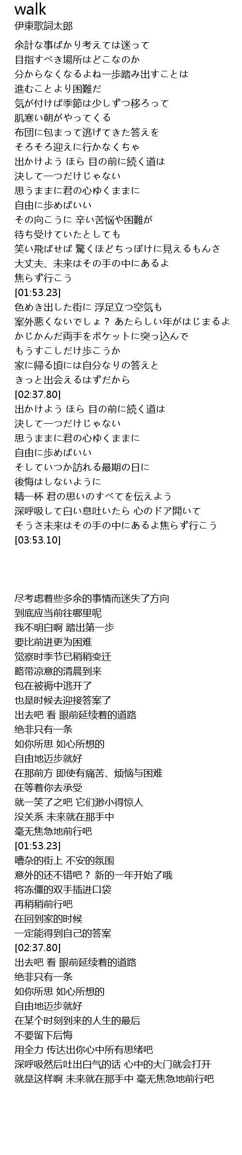 | [02:21.65] | もうすこしだけ歩こうか |