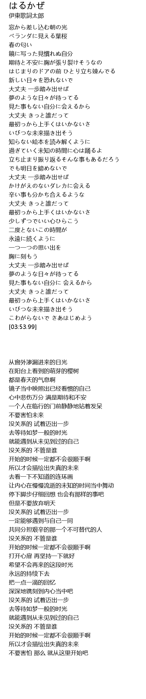 | [03:46.46] | こわがらないで さあはじめよう |