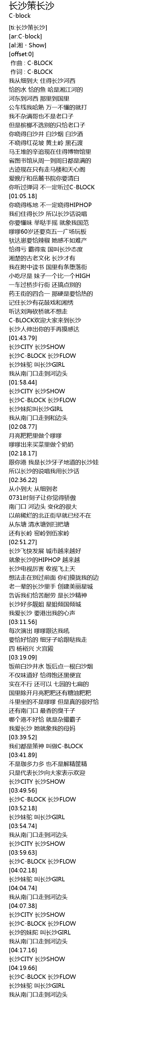 | [01:38.56] | C-BLOCK欢迎大家来到长沙 |