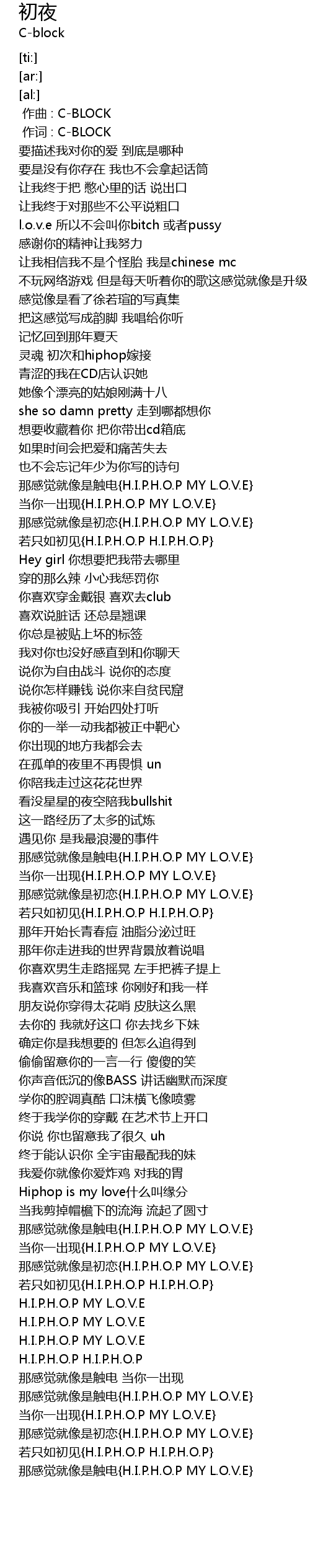 | [02:12.18] | 当你一出现{H.I.P.H.O.P MY L.O.V.E} |
