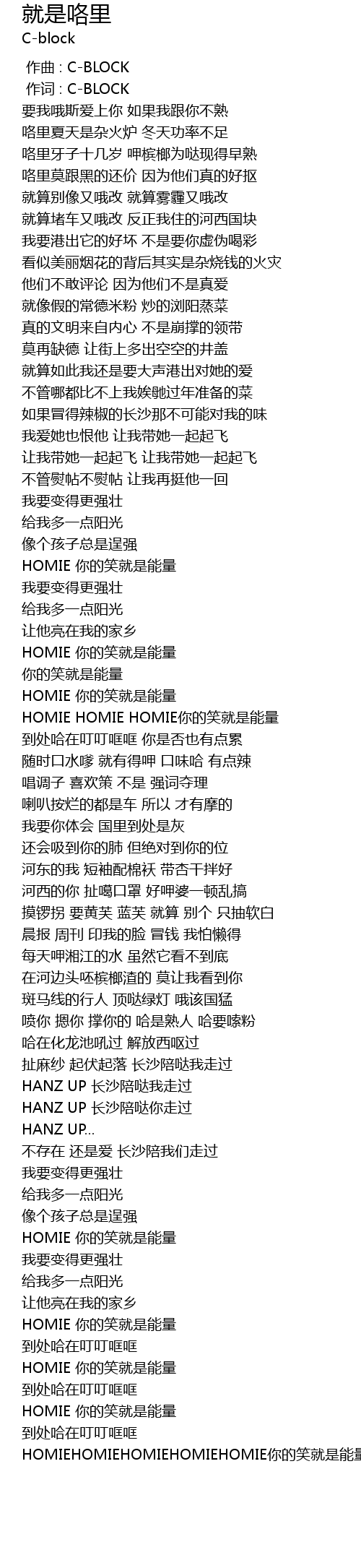 | [01:23.21] | HOMIE 你的笑就是能量 |