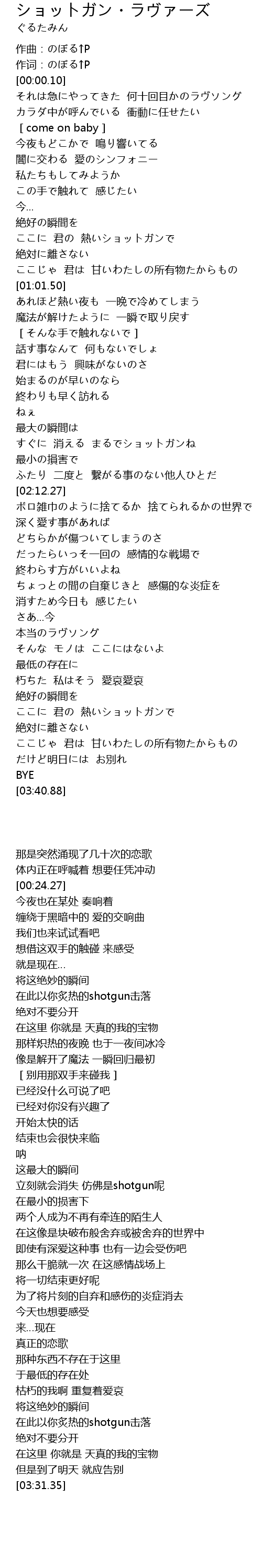 | [03:14.82] | ここに 君の 熱いショットガンで |