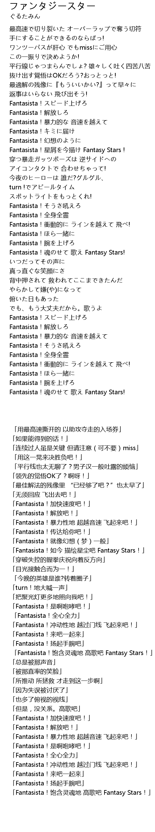 | [03:35.54] | Fantasista! hún gē Fantasy Stars! |
