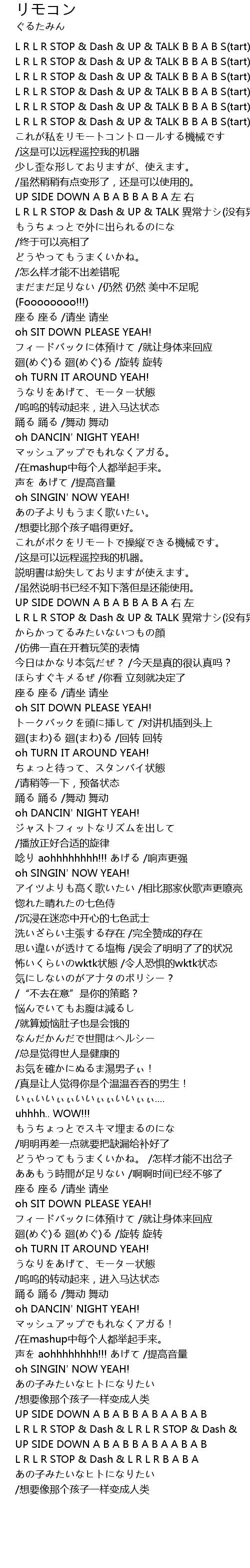 | [00:03.920] | L R L R STOP & Dash & UP & TALK B B A B S(tart) |