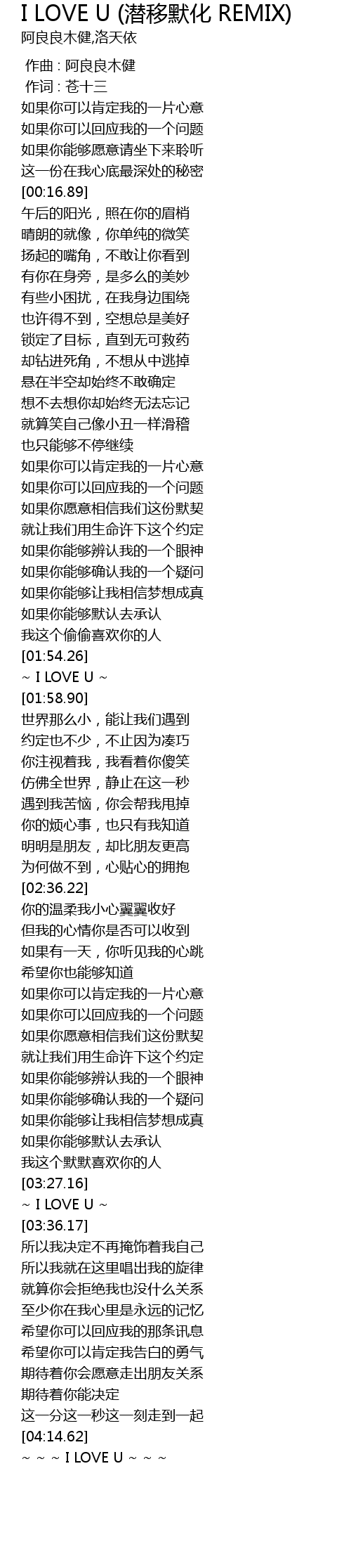 | [04:26.94] | ~ ~ ~ I LOVE U ~ ~ ~ |