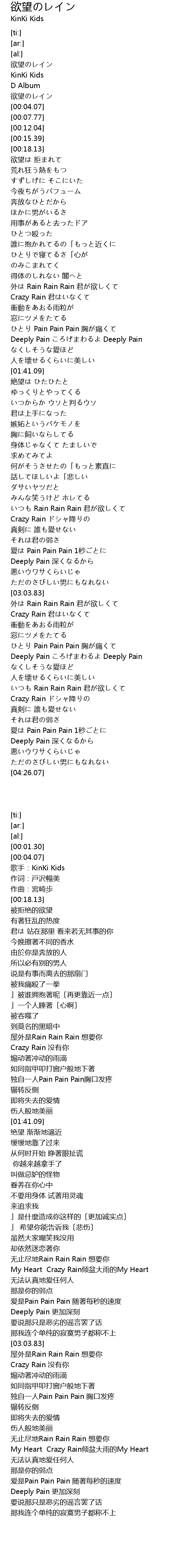 | [00:01.30] | 欲望のレイン |