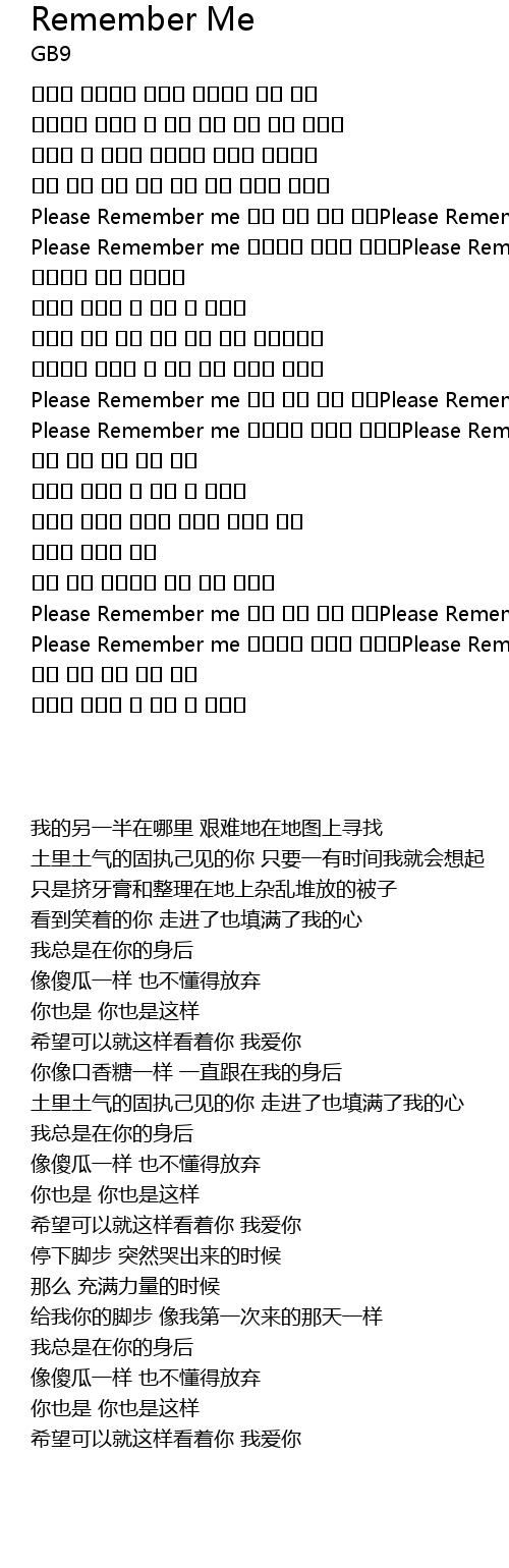 | [03:01.51] | Please Remember me 내가 항상 너의 뒤에Please Remember me |
