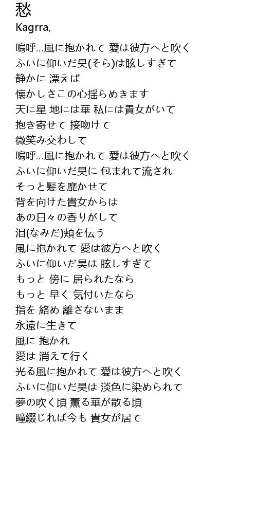 | 嗚呼…風に抱かれて 愛は彼方へと吹く | |