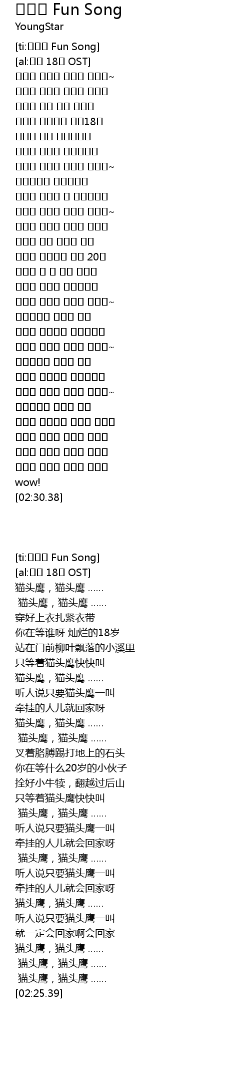 [ti:소쩍궁 Fun Song] |