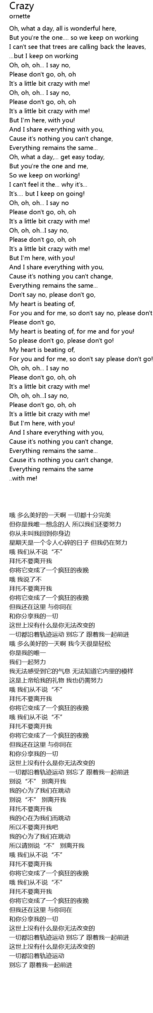 | [00:32.85] | It's a little bit crazy with me! |
