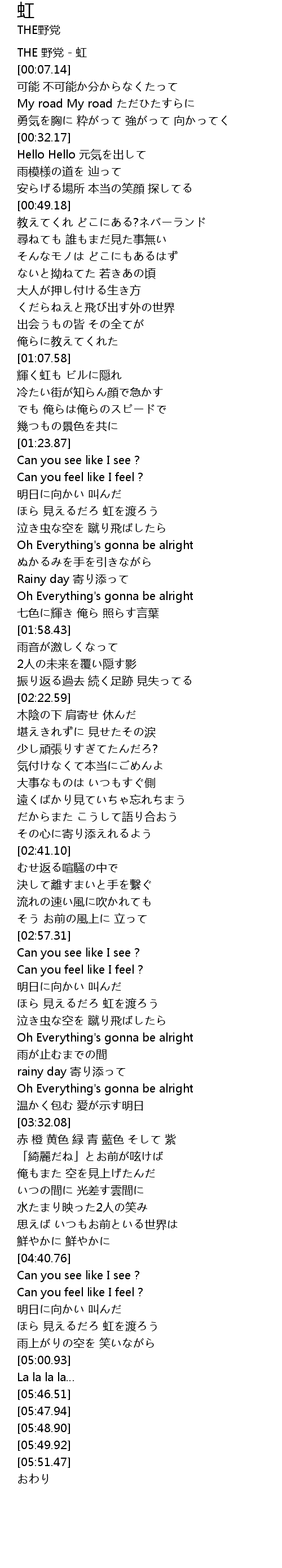| [00:00.31] | THE 野党 - 虹 |