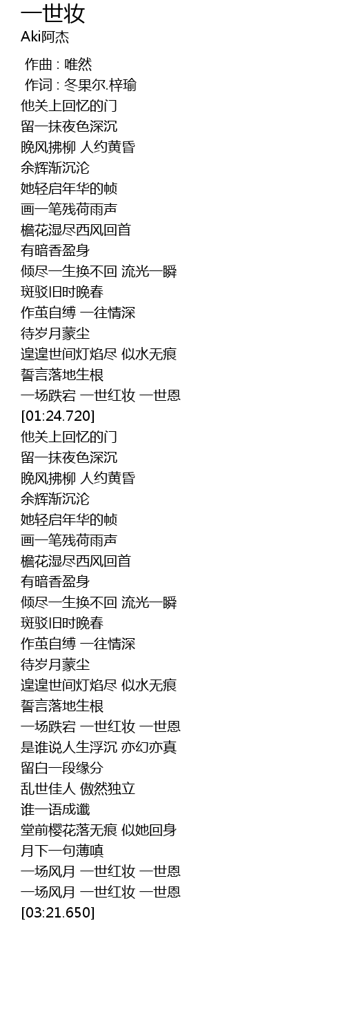| [01:17.460] | 一场跌宕 一世红妆 一世恩 |