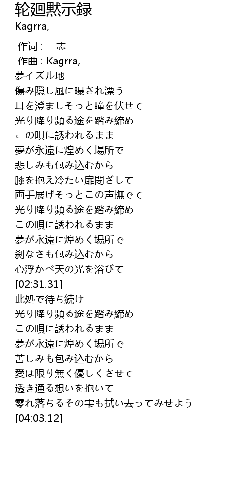 | [01:57.58] | この唄に誘われるまま |