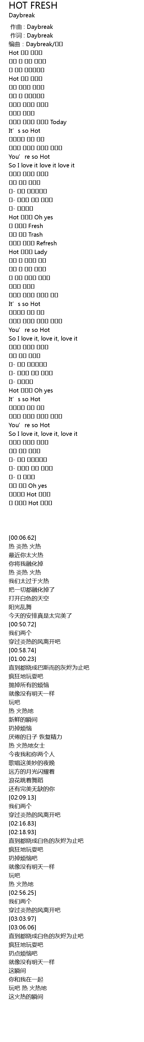 | [03:40.22] | 이 순간을 Hot 뜨겁게 |