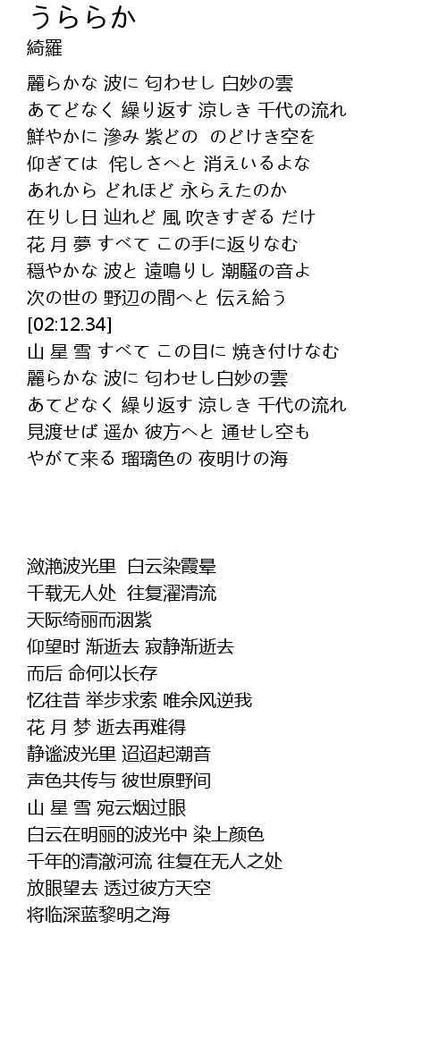 | [00:42.44] | 仰ぎては 侘しさへと 消えいるよな |