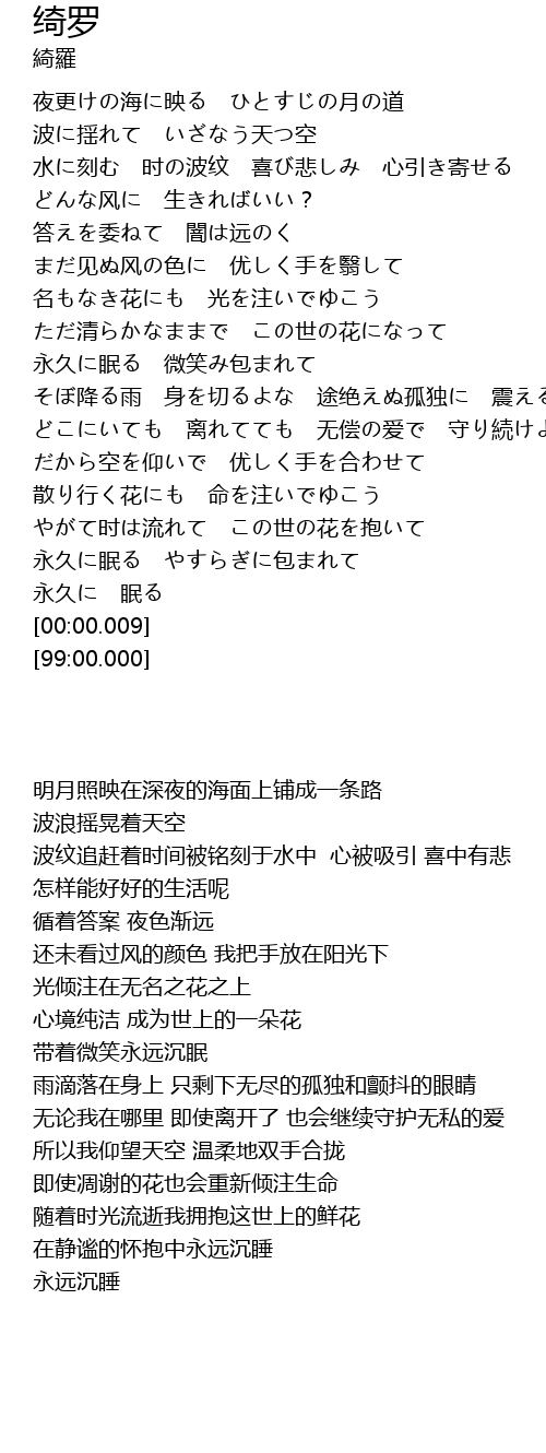 | [02:02.42] | 永久に眠る 微笑み包まれて |