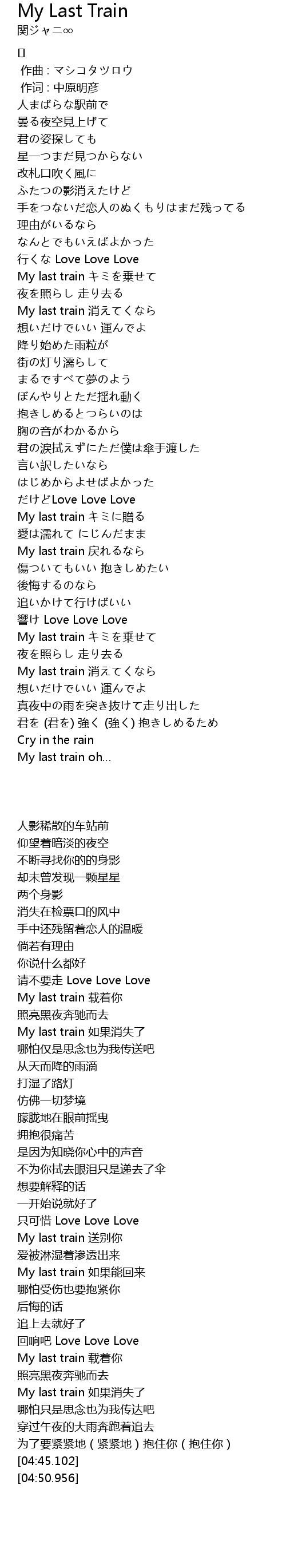 | [03:06.834] | My last train zèng |