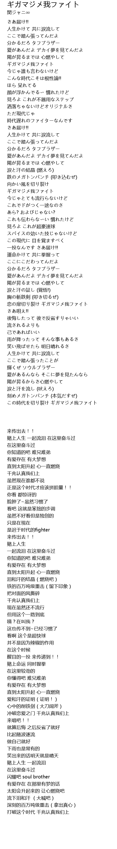 | [01:45.960] | ギガマジメ我ファイト |