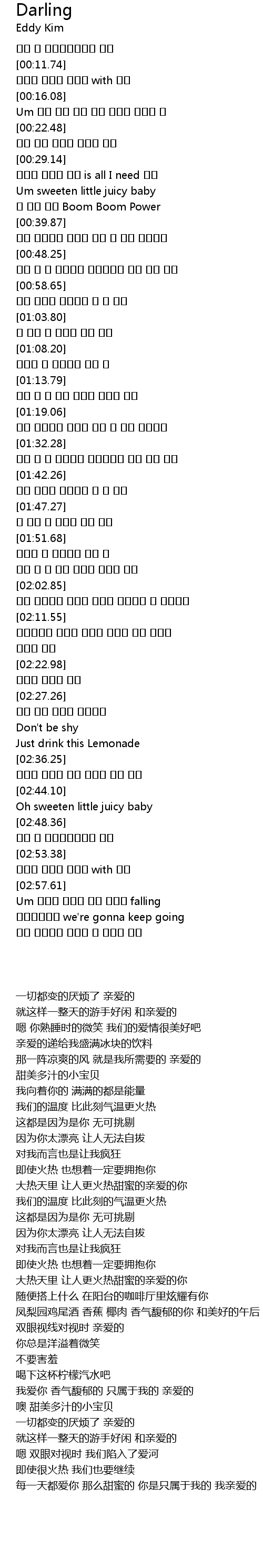 | [02:37.67] | 사랑해 달달한 향의 나만의 달링 달링 |