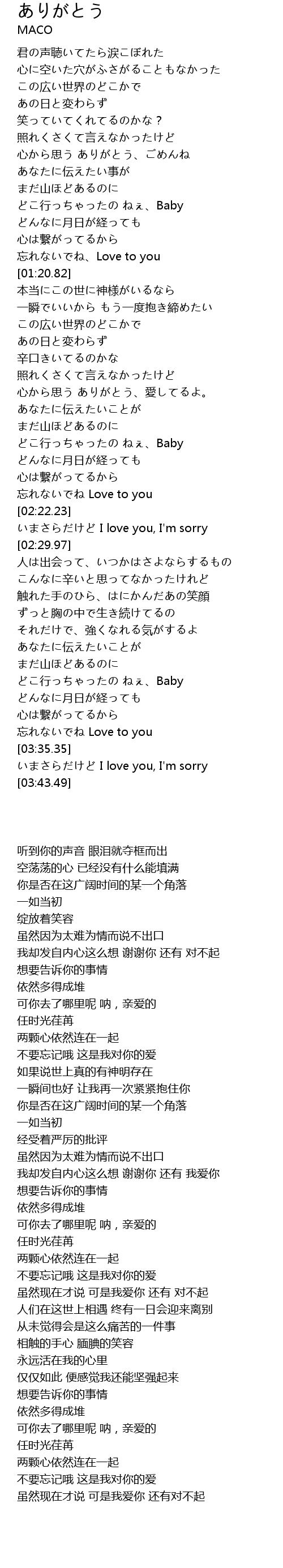 | [03:30.63] | 忘れないでね Love to you |