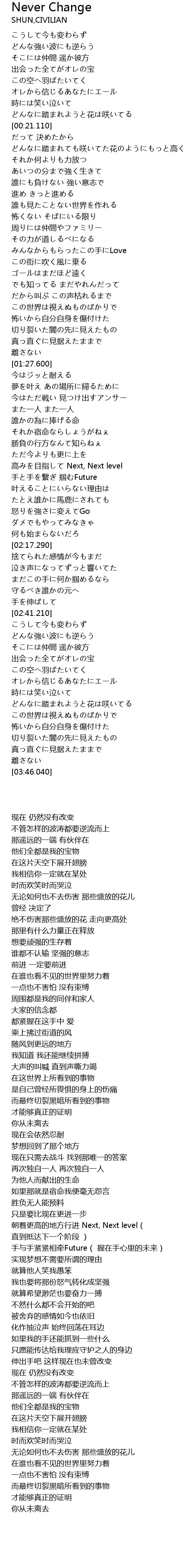 | [01:02.710] | だから叫ぶ この声枯れるまで |