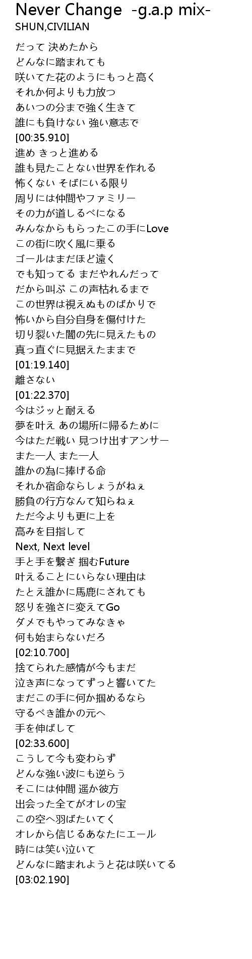 | [02:59.350] | どんなに踏まれようと花は咲いてる |