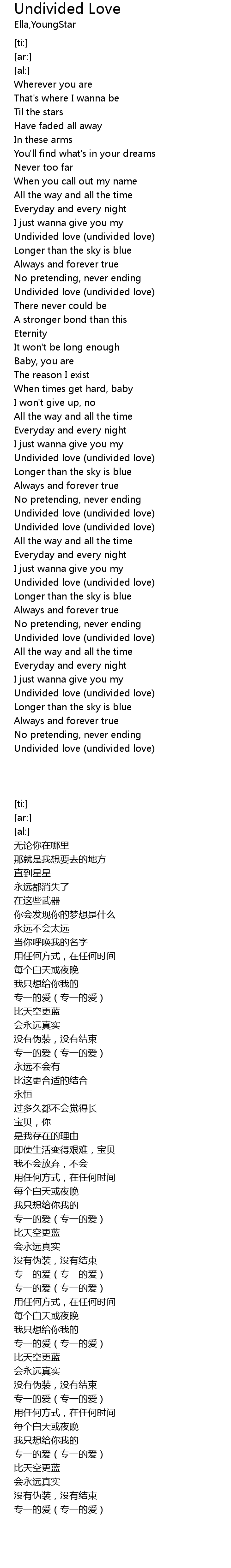 | [03:23.62] | Undivided love (undivided love) |