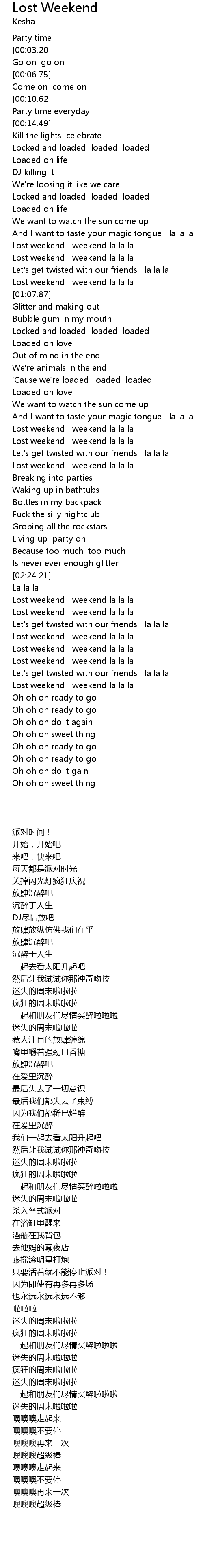 | [02:30.32] | Lost weekend weekend la la la |