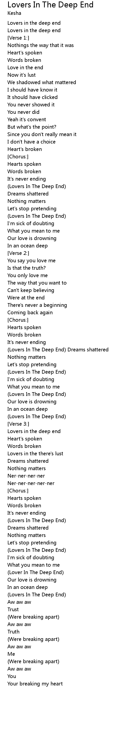 | (Lovers In The Deep End) Dreams shattered | |