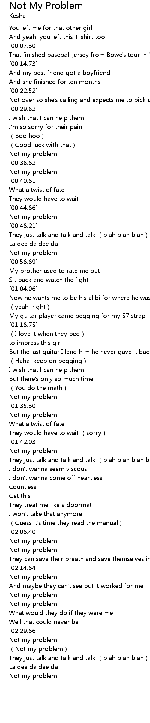 | [02:22.67] | Not my problem |