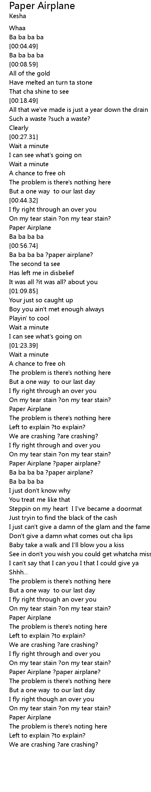 | [00:57.74] | Ba ba ba ba ?paper airplane? |
