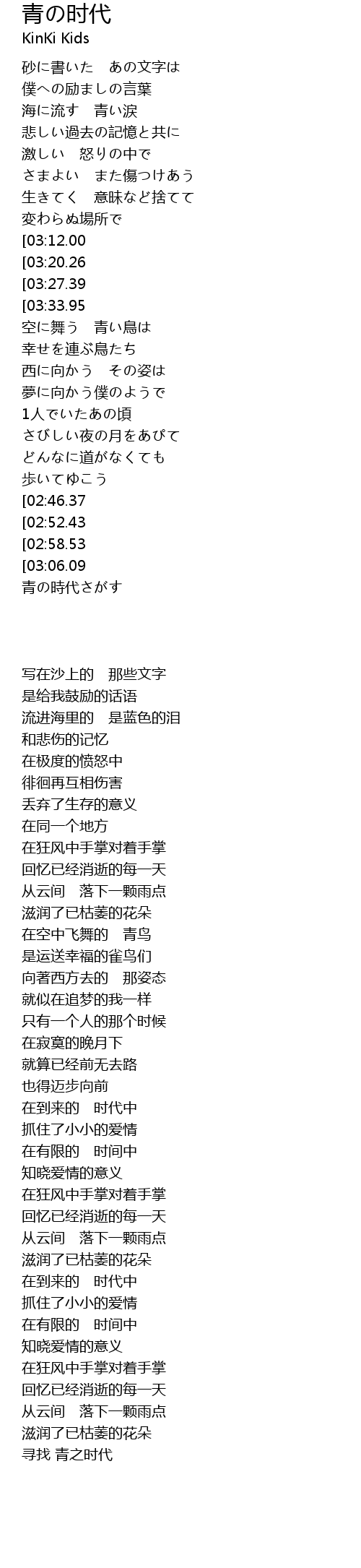 | [04:15.18][02:46.37] | shí dài zhōng |
