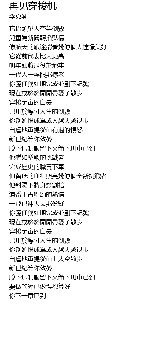 | [03:09.781] | 脫下這制服留下火箭下班車已到 |