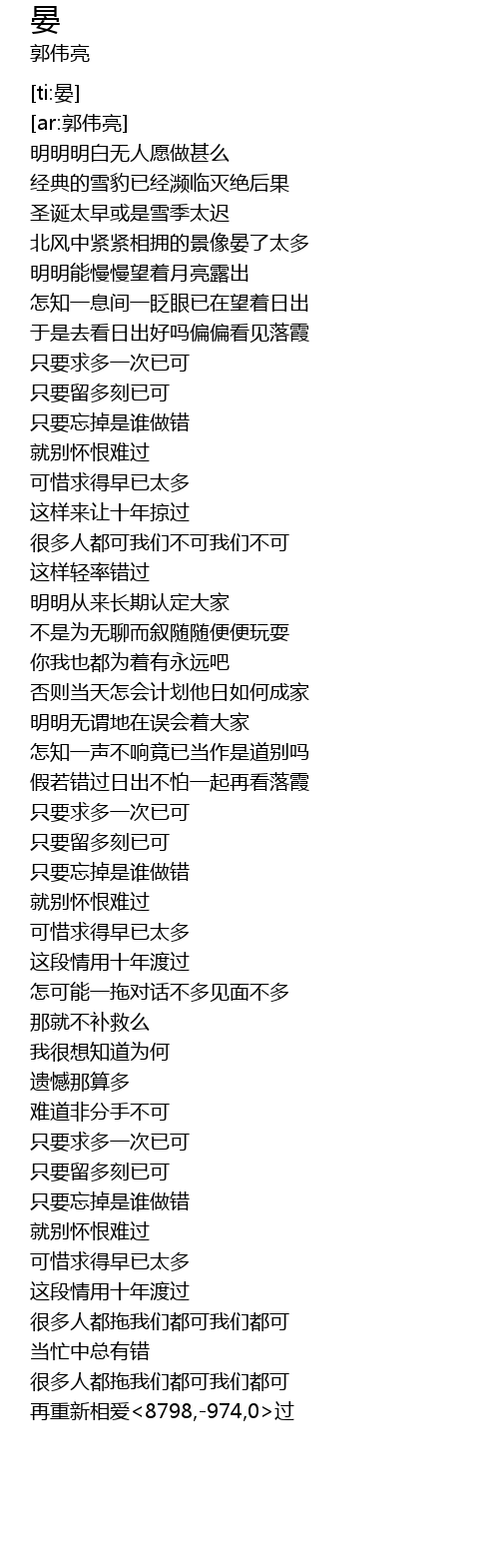 | [01:56.932] | jiǎ ruò cuò guò rì chū bù pà yì qǐ zài kàn luò xiá |