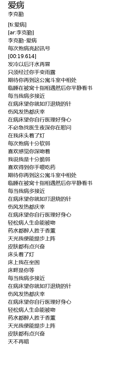 | [02:00.457] | 在病床望你就如打退烧的针 |
