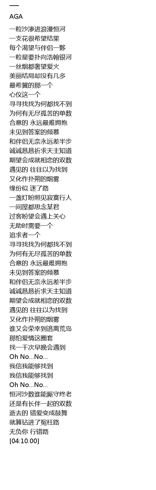 | [02:18.68] | xún xún zhǎo zhǎo wèi hé dōu zhǎo bu dào |