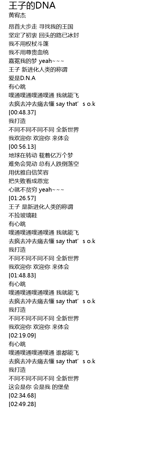 | [01:26.80] | wáng zǐ shì xīn jìn huà rén lèi de chēng wèi |