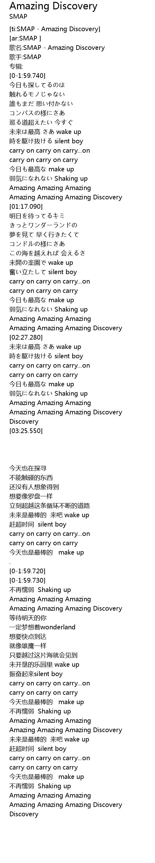 | [02:19.730] | Amazing Amazing Amazing Discovery |