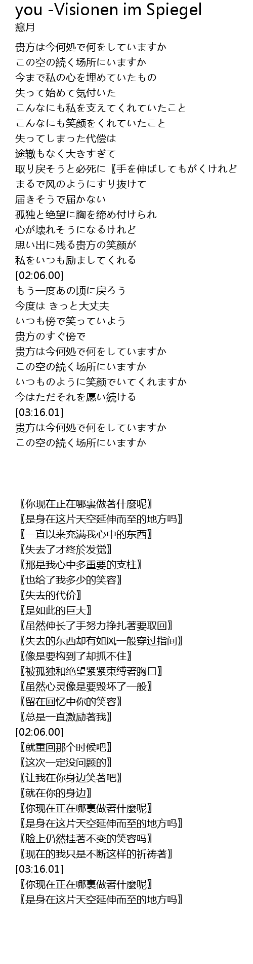 | [02:51.44] | 贵方は今何処で何をしていますか |