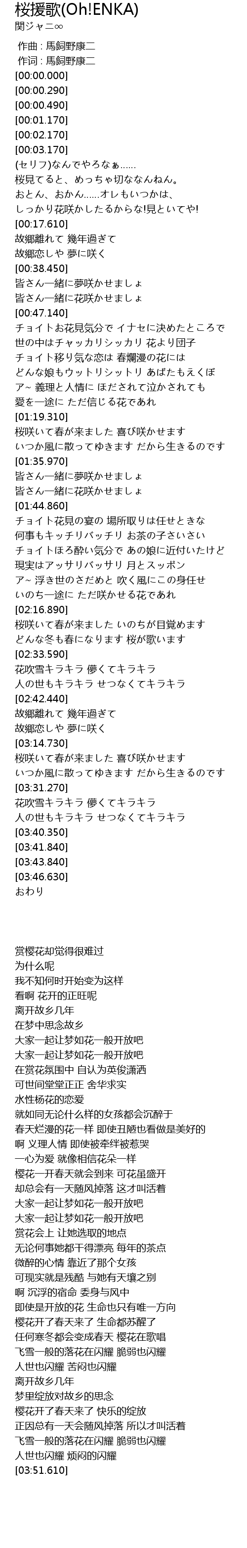 | [02:34.390] | 花吹雪キラキラ 儚くてキラキラ |
