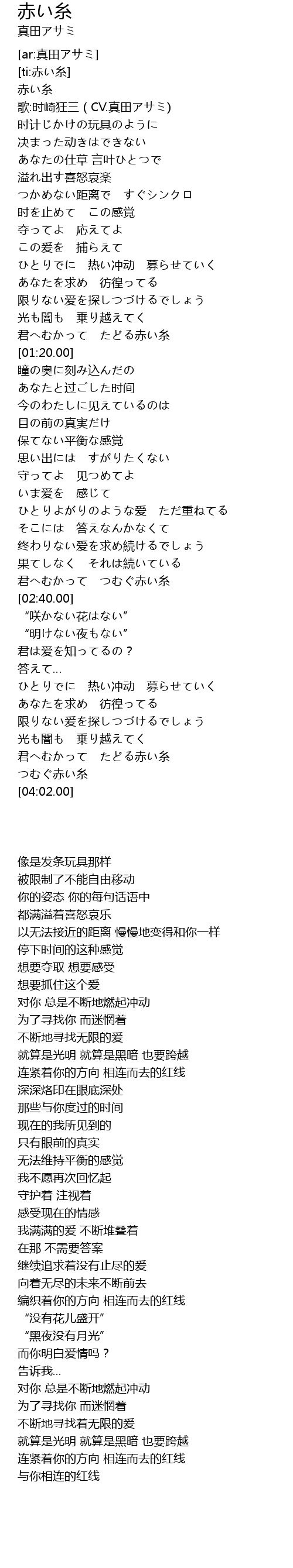 | [03:49.69] | 君へむかって たどる赤い糸 |