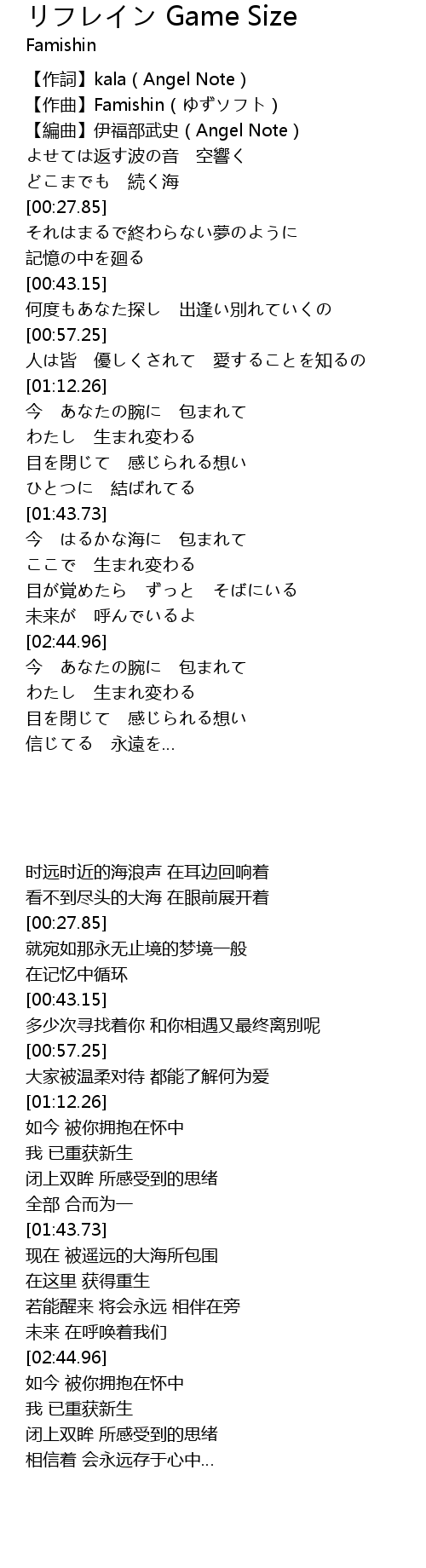 | [02:16.92] | 今 はるかな海に 包まれて |