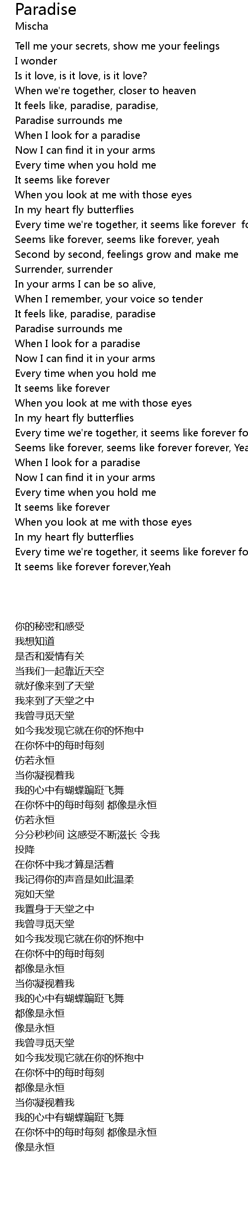 | [00:18.870] | Tell me your secrets, show me your feelings |