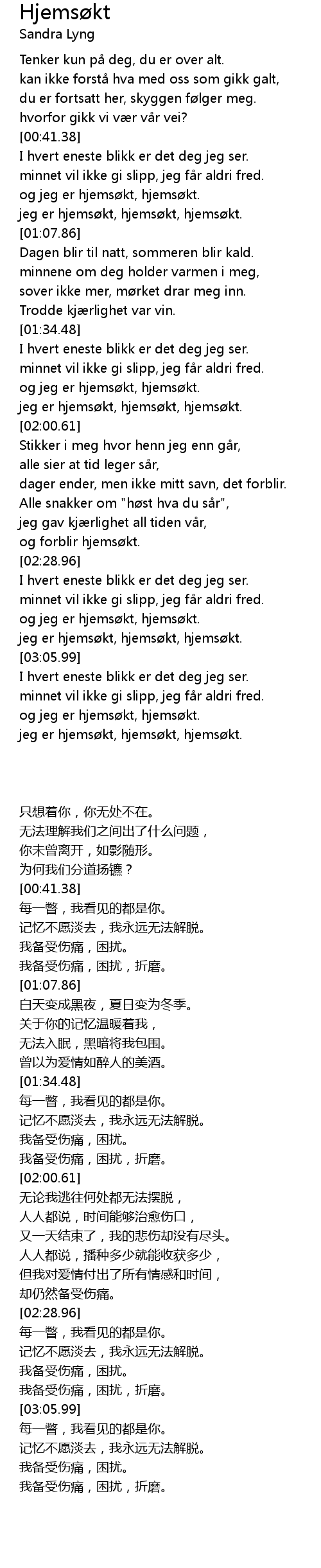 | [03:00.54] | jeg er hjems kt, hjems kt, hjems kt. |