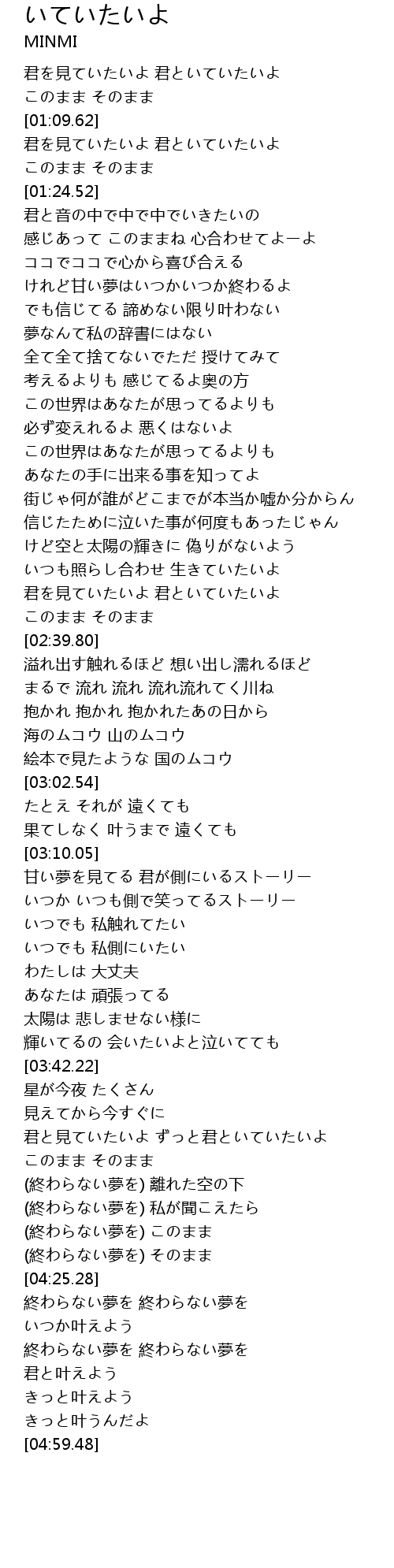 | [00:55.57] | 君を見ていたいよ 君といていたいよ |