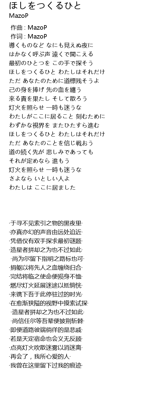 | [00:50.33] | ほしをつくるひと わたしはそれだけ |