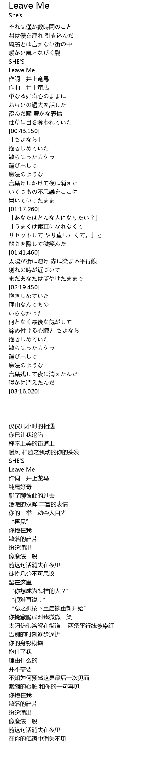 | [00:22.580] | Leave Me |