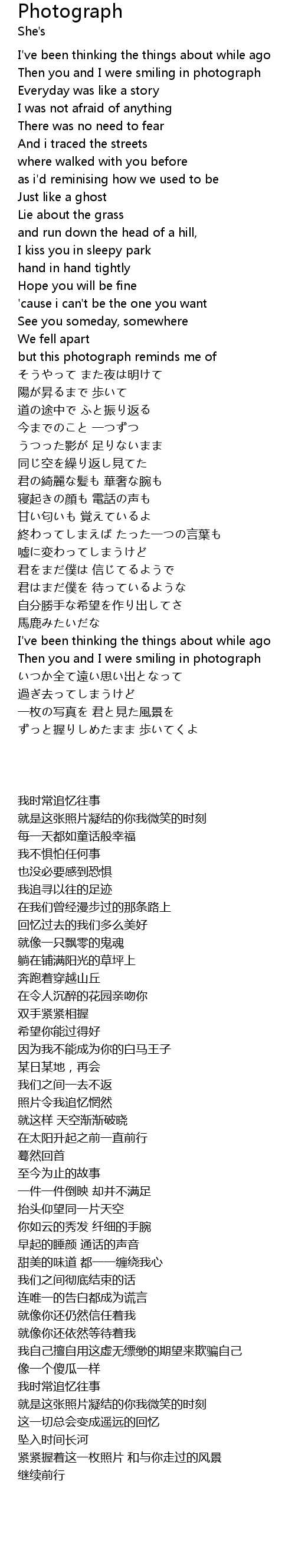 | [04:28.160] | 一枚の写真を 君と見た風景を |