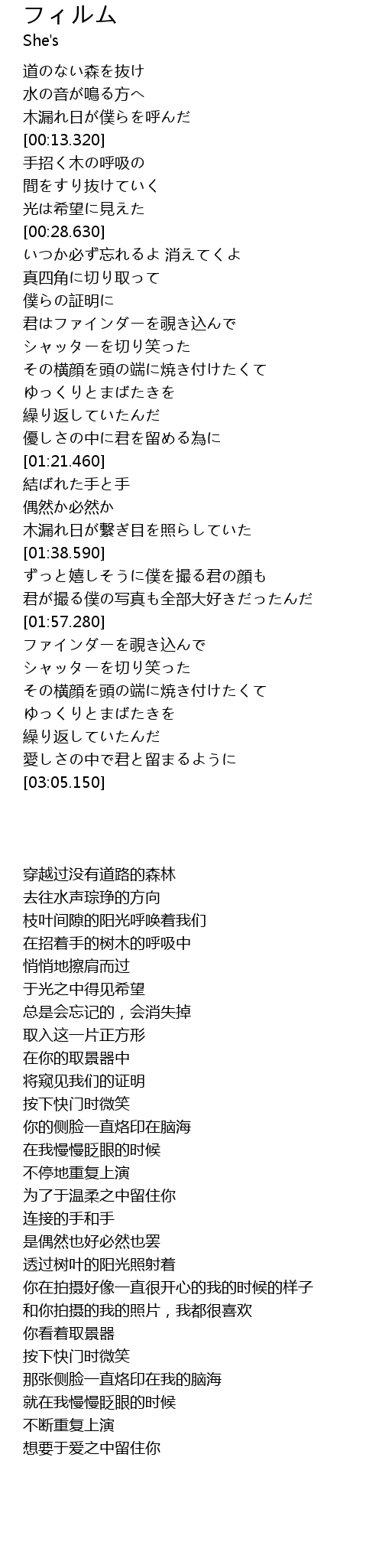 | [01:47.690] | 君が撮る僕の写真も全部大好きだったんだ |